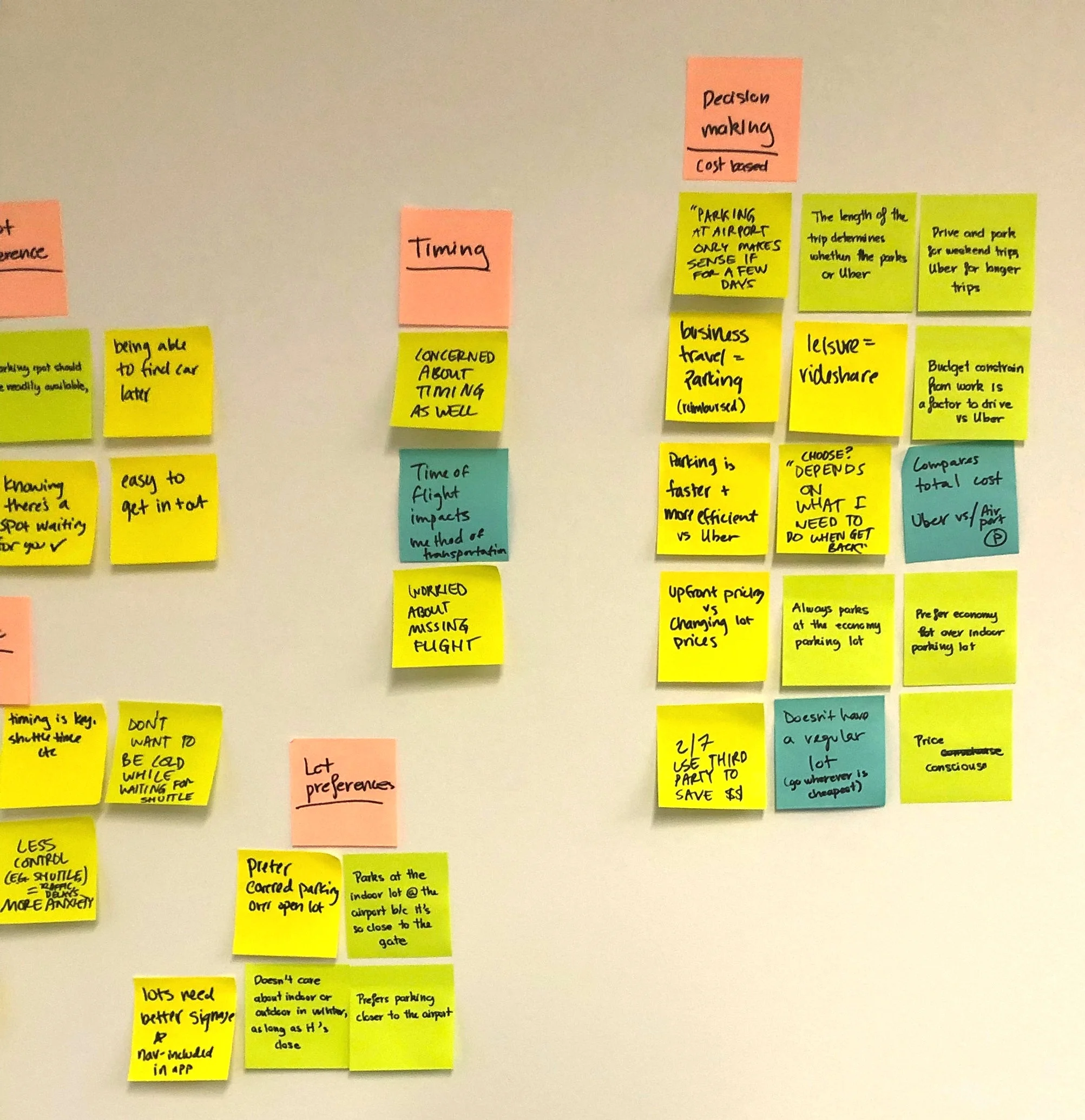 To start the research journey, I interviewed 4 users, all of whom have used airport parking on a semi-regular basis. To conduct the interview I created a discussion guide, and asked questions about the following topics: